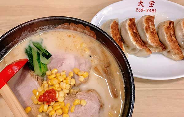 大宝ラーメンは、1981年の創業以来、地元に根ざしたお店として、手づくりのラーメンと餃子をご提供しています。海の幸いっぱいのスープ、味がよく絡むちぢれ麺、そして栄養満点の手づくり餃子を、じっくりとご堪能ください。